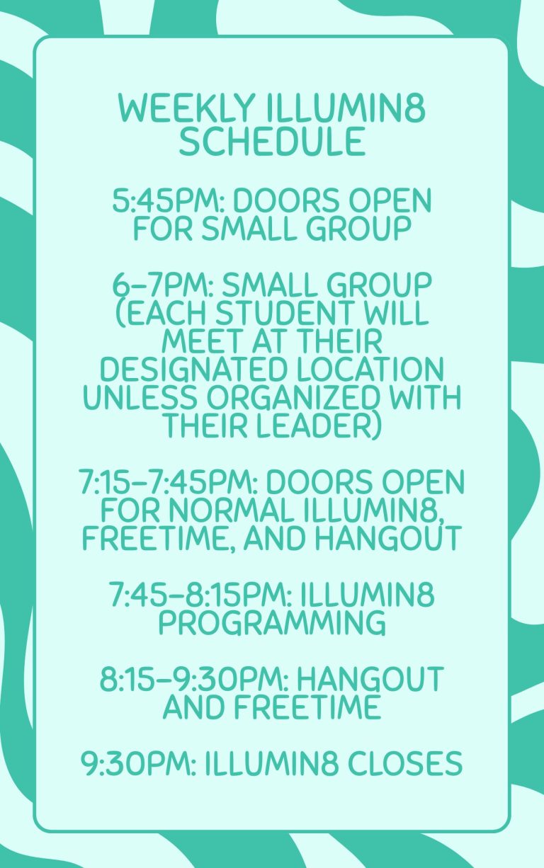 The 1st, 2nd, 3rd, and 4th Wednesday of every month. Doors will open at 7:15pm and it will run until 9:30pm. Come at 6pm if you’d also like to participate in a small group!